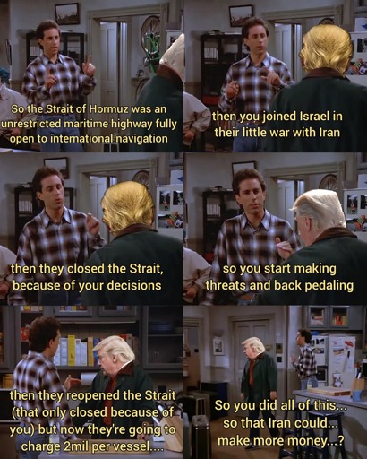 Tadeusz@szmer.info to Memes@lemmy.ml · 10 hours agoThe eldest iranian larper: friendship with the orange pedo and his genocidal buddy has endedszmer.infoimagemessage-square8linkfedilinkarrow-up1110arrow-down12