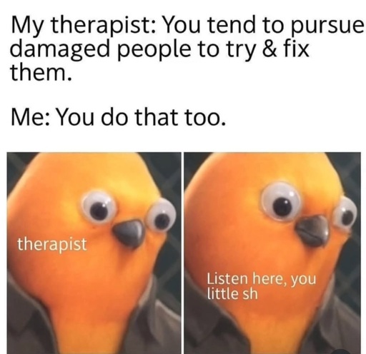 EndOfLine@lemmy.worldEnglish · 7 hours agoTherapy lemmy.worldimagemessage-square7linkfedilinkarrow-up1382arrow-down15