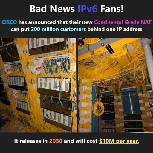I know this is humor, but for the record this wouldn’t work. Each simultaneous TCP connection needs a unique four-tuple (source address, source port, destination address, destination port). If a lot the people behind the NAT try to connect to the same place (destination address and port) at the same time (something popular like Google, YouTube or Netflix), and their source address is the same, the source port needs to be different for each connection. So after at most 65535 connections within a short time the NAT would run out of ports and no one behind the same NAT would be able to open new connections to the same place until the NAT mapping expiries.