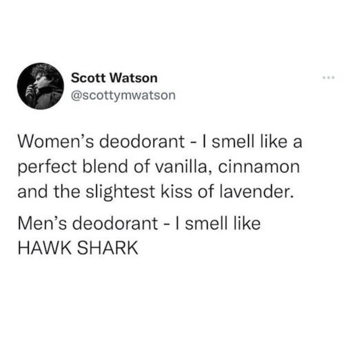 that’s why I always buy women’s deodorants. they smell much nicer.