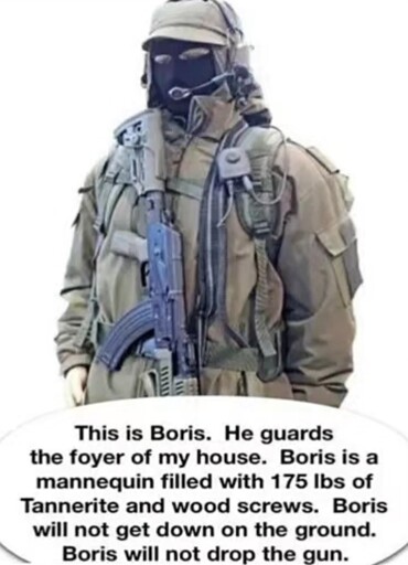 If Boris is being shot and explodes, the likelihood of the home owner already being killed by ICE or other agents is pretty high.