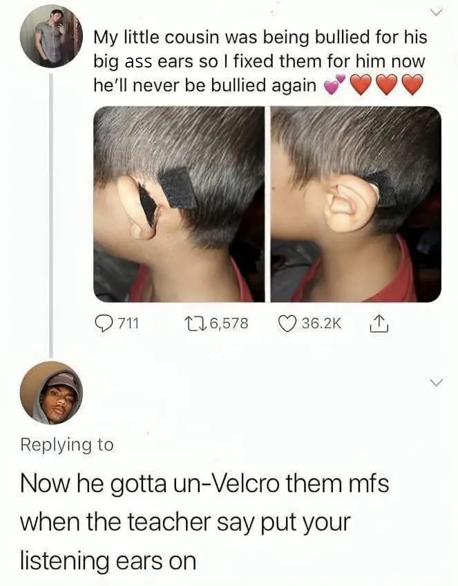 On a serious note, I know someone who had a corrective surgery as a teen to “fix” his ears, and I genuinely think he looked better before. Now his other uneven facial features come in focus much more. Sometimes it just doesn’t make things better.