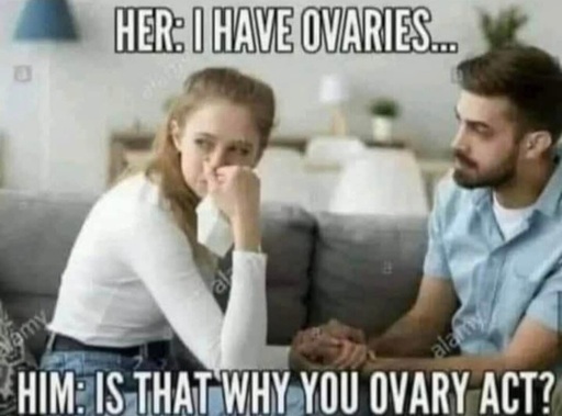 I don’t love the “haha, women are hysterical” tone here, but also it’s a solid pun. So I say bravo to your shitpost. Anywhere else and it would not have been received well.