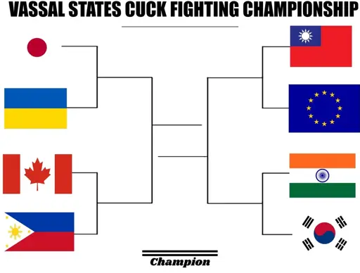 I mean the EU really is an og cuck and many cucks can learn some moves from them. In the end I think south Korea has some outstanding tactics like taking the most toxic parts of US “culture” and blending them in a very profitable way. That plus prostituting their own military (Vietnam war comes to mind) makes them just too stupid sexy to not advance to finals imo.