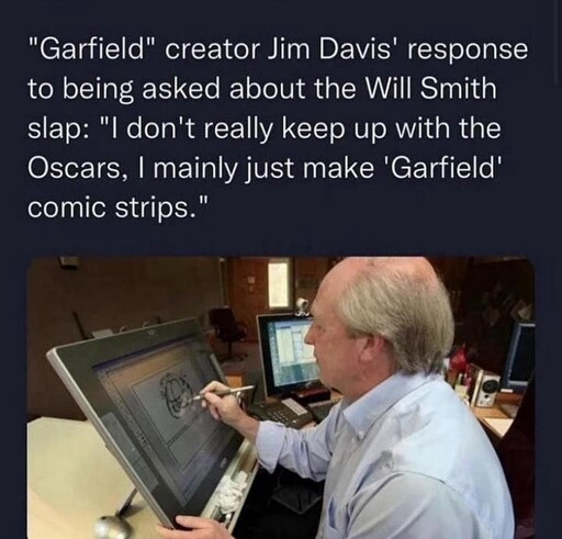 As if he hasn’t been drawing the same basic picture 500 times a day for 50+ years. He can probably draw and color a perfect Garfield strip blindfolded with a broken arm.