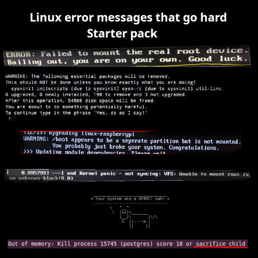 minus-squarephx@lemmy.calinkfedilinkarrow-up1·2 years ago Login as a user. Delete the user while still logged in Run command You should get a message “you don’t exist, go away” Not sure if that one is still around but I know one person who ran a script with “deluser $USER” and it ate root resulting in fun messages like that