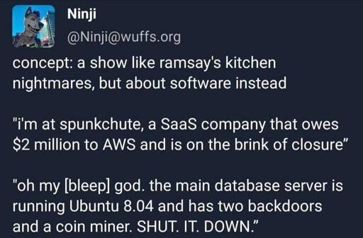 Oh my days. Your AWS isn’t destroying old deployments, no wonder you’re indebt, you have seven times more compute than NASA FOR FUCKS SAKE.