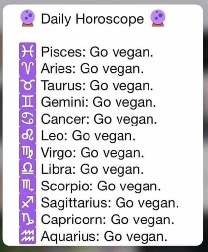 MilitantVegan@lemmy.world to Memes@lemmy.ml · 2 years agoThe signs are aligned.lemmy.worldimagemessage-square1linkfedilinkarrow-up11arrow-down13